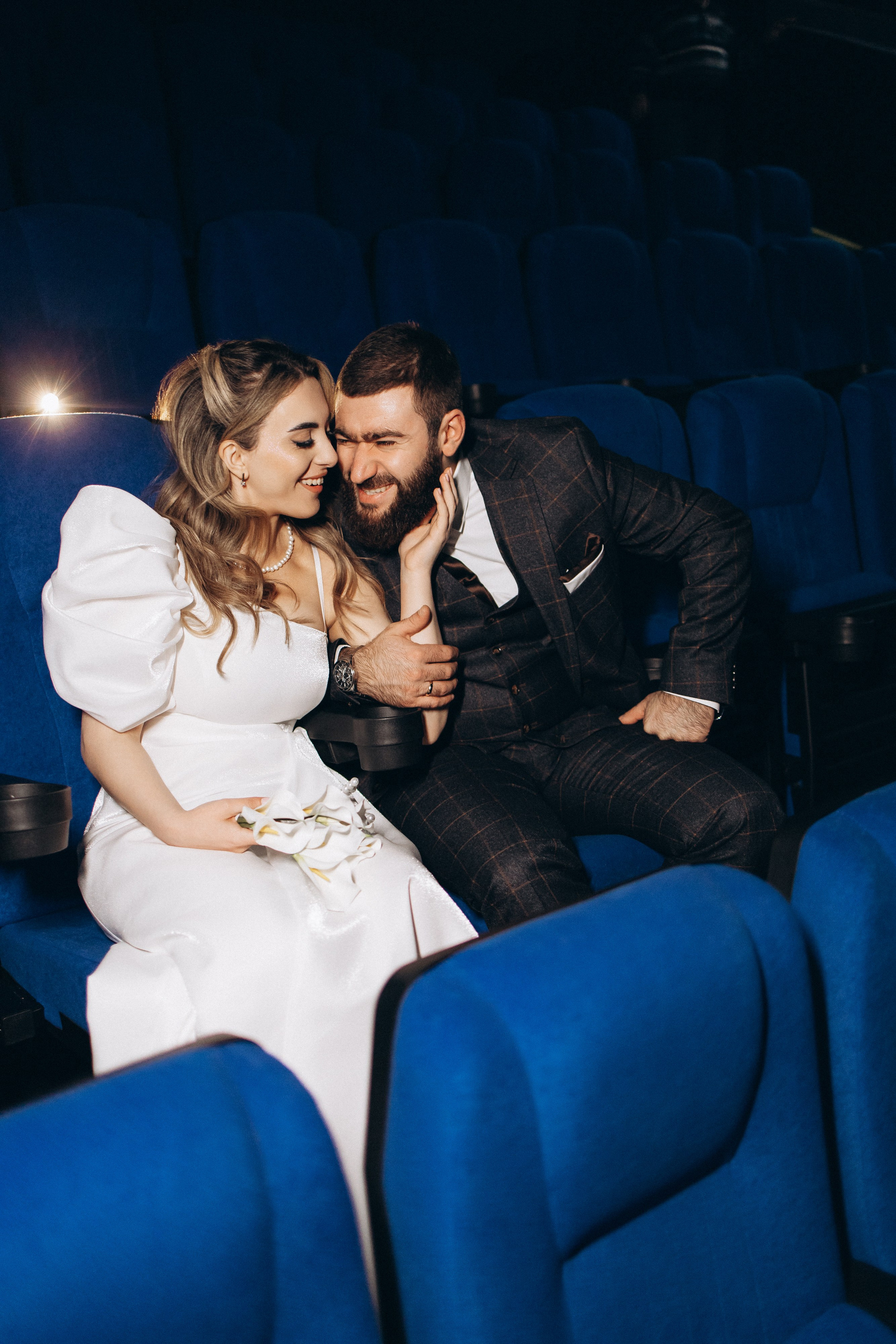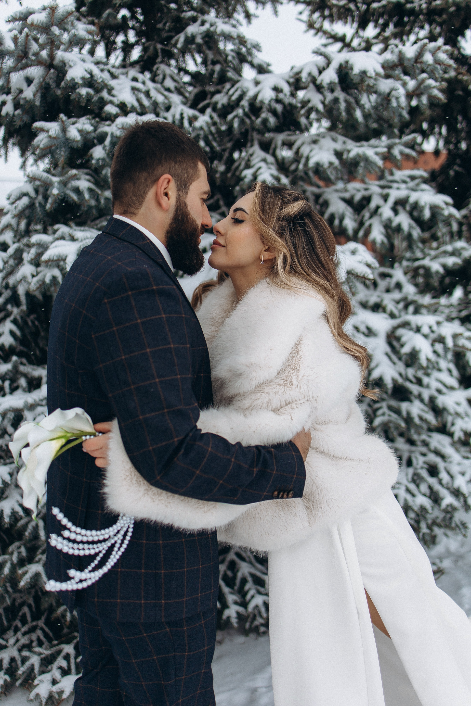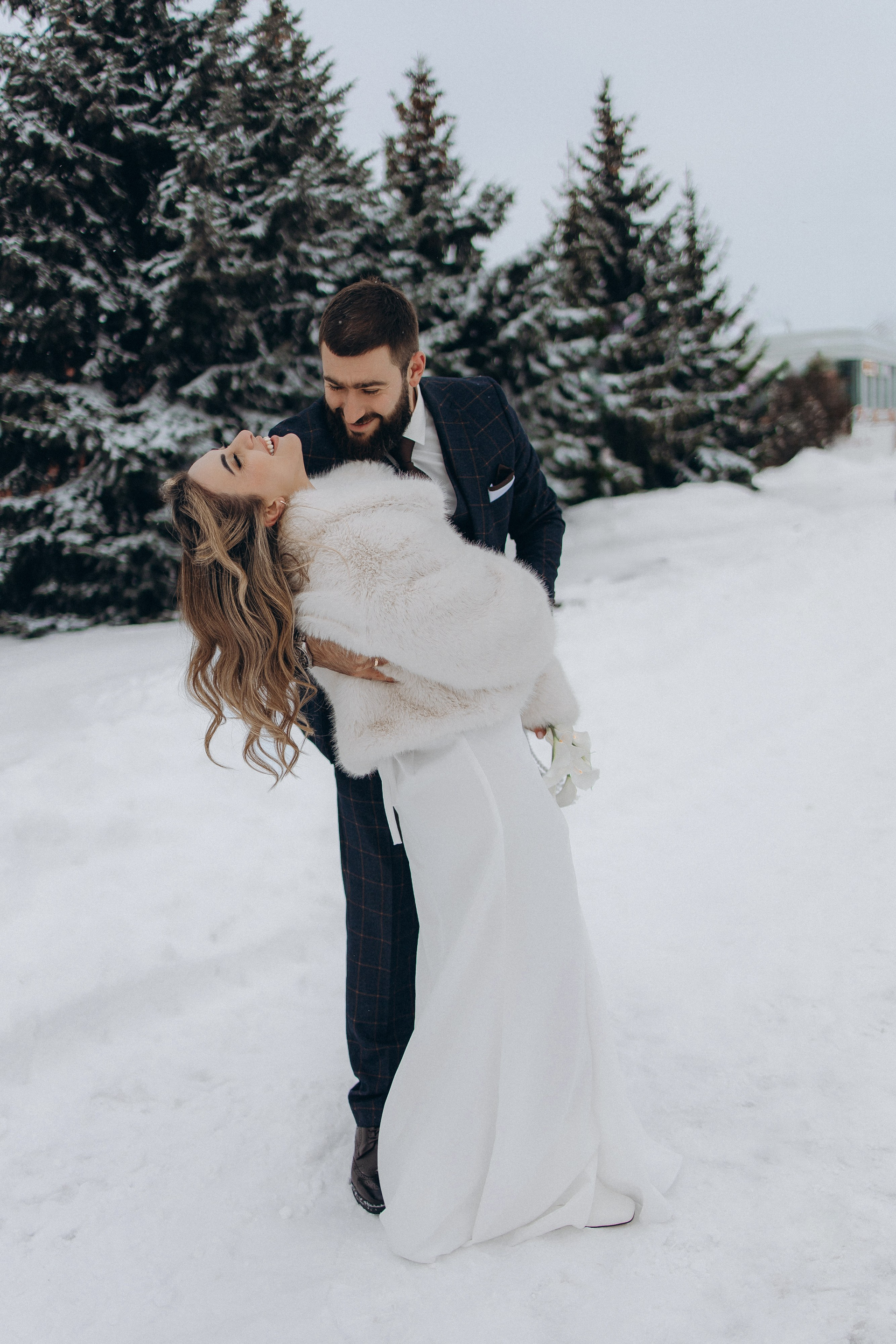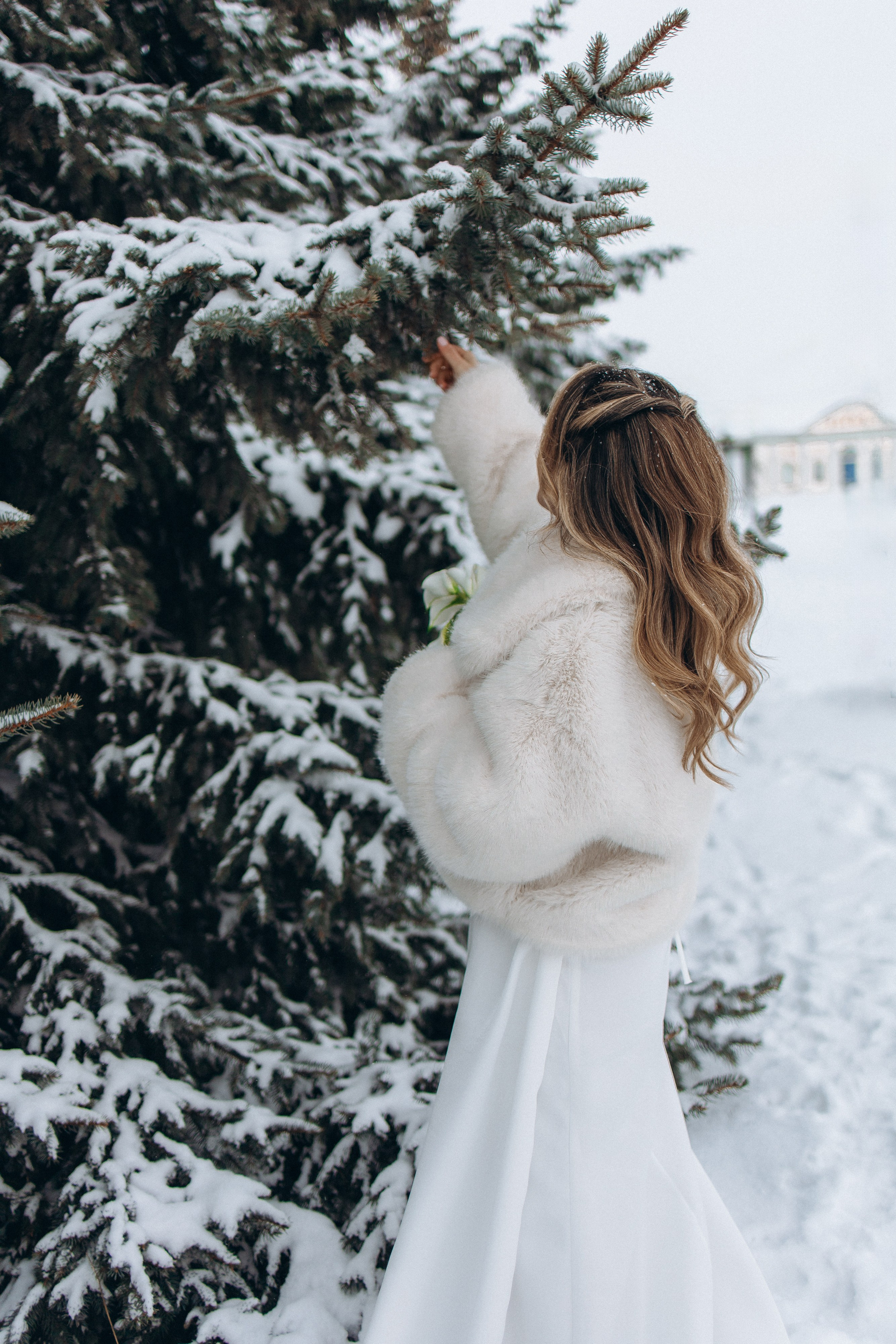 Утро прошло в домашних классических сборах: тёплые кадры с родными и друзьями, много эмоций. Затем ЗАГС, съёмка в кинотеатре и прогулка среди заснеженных ёлок. Результат — трогательная зимняя история любви. Я лично пищу от восторга