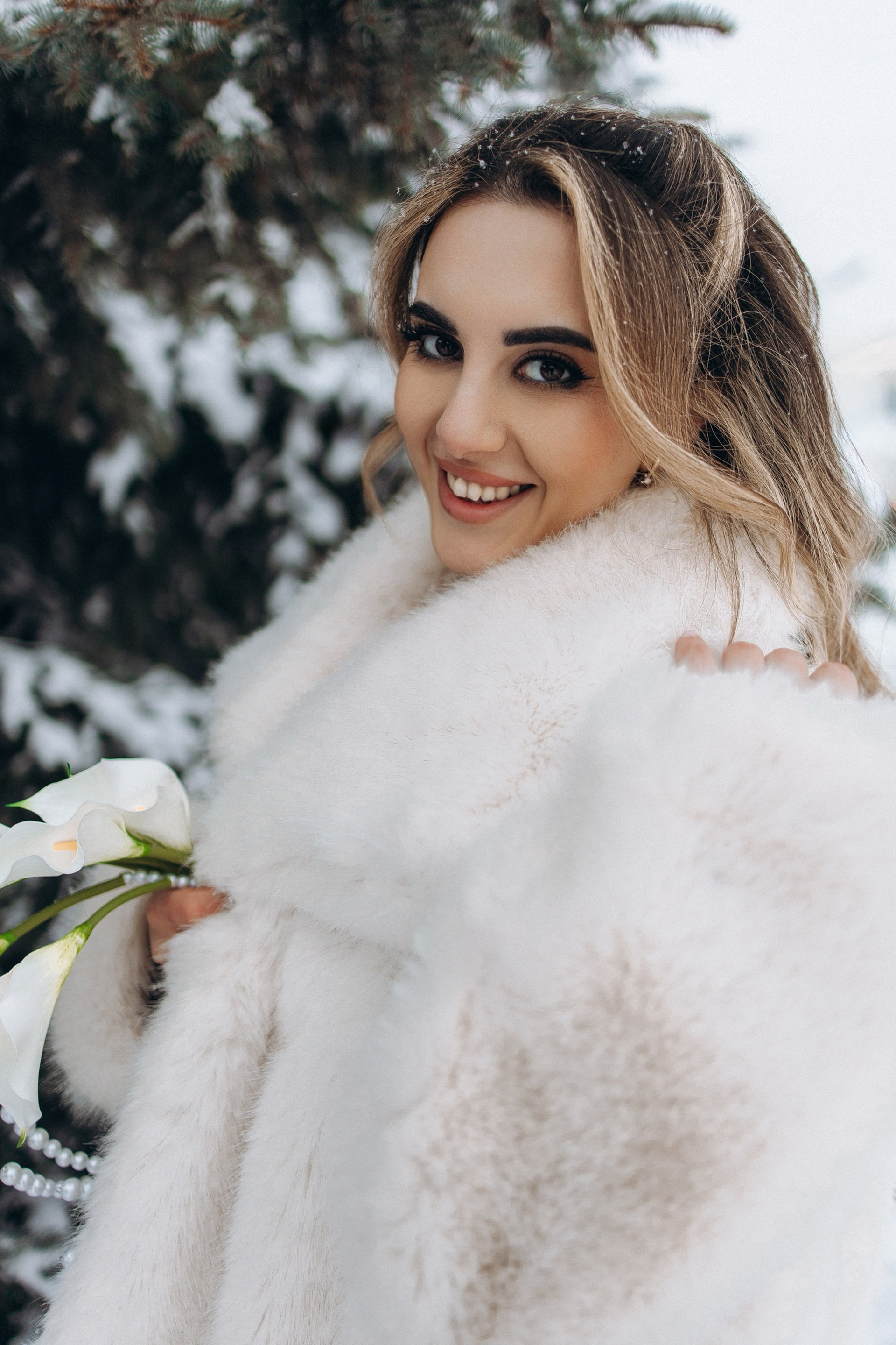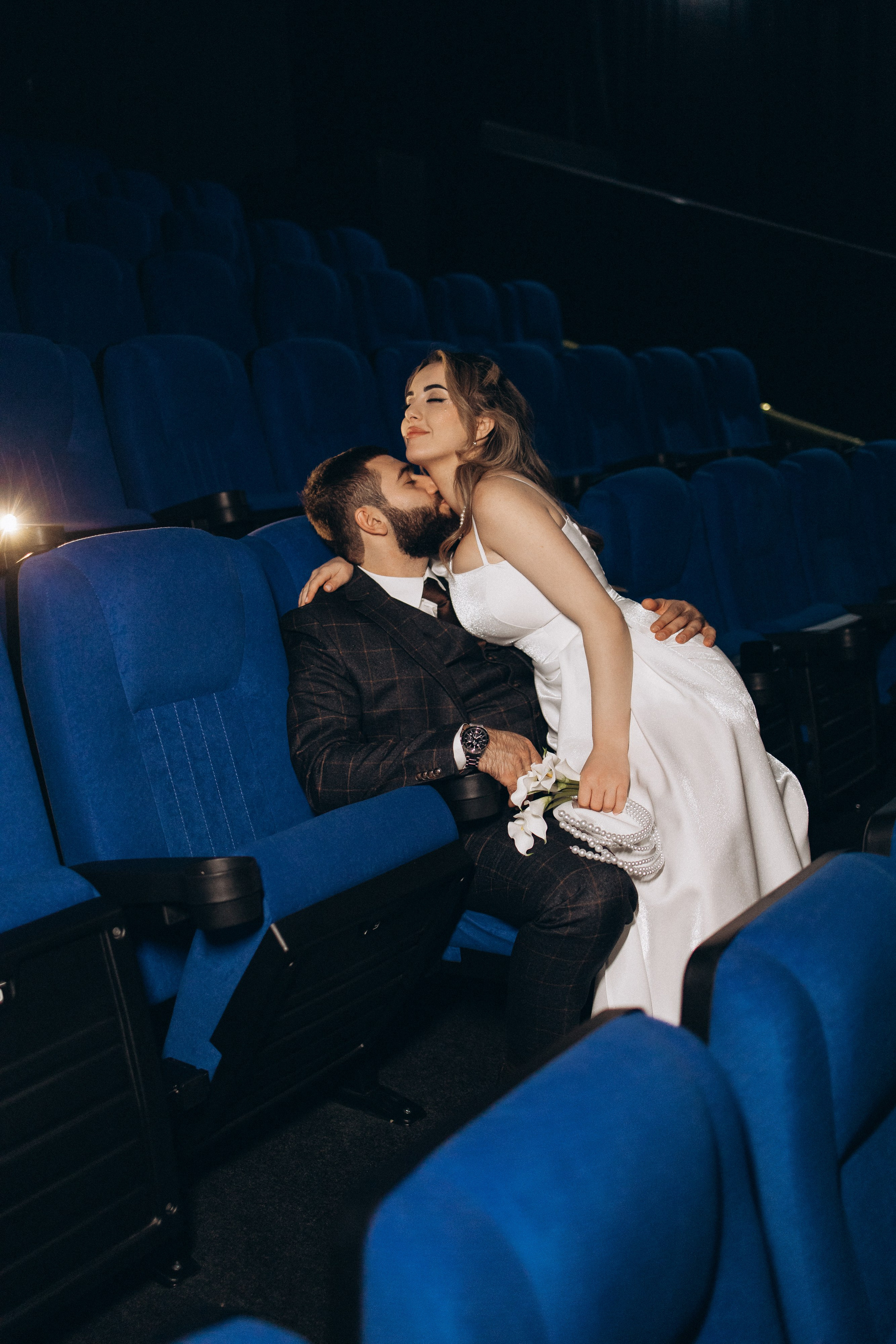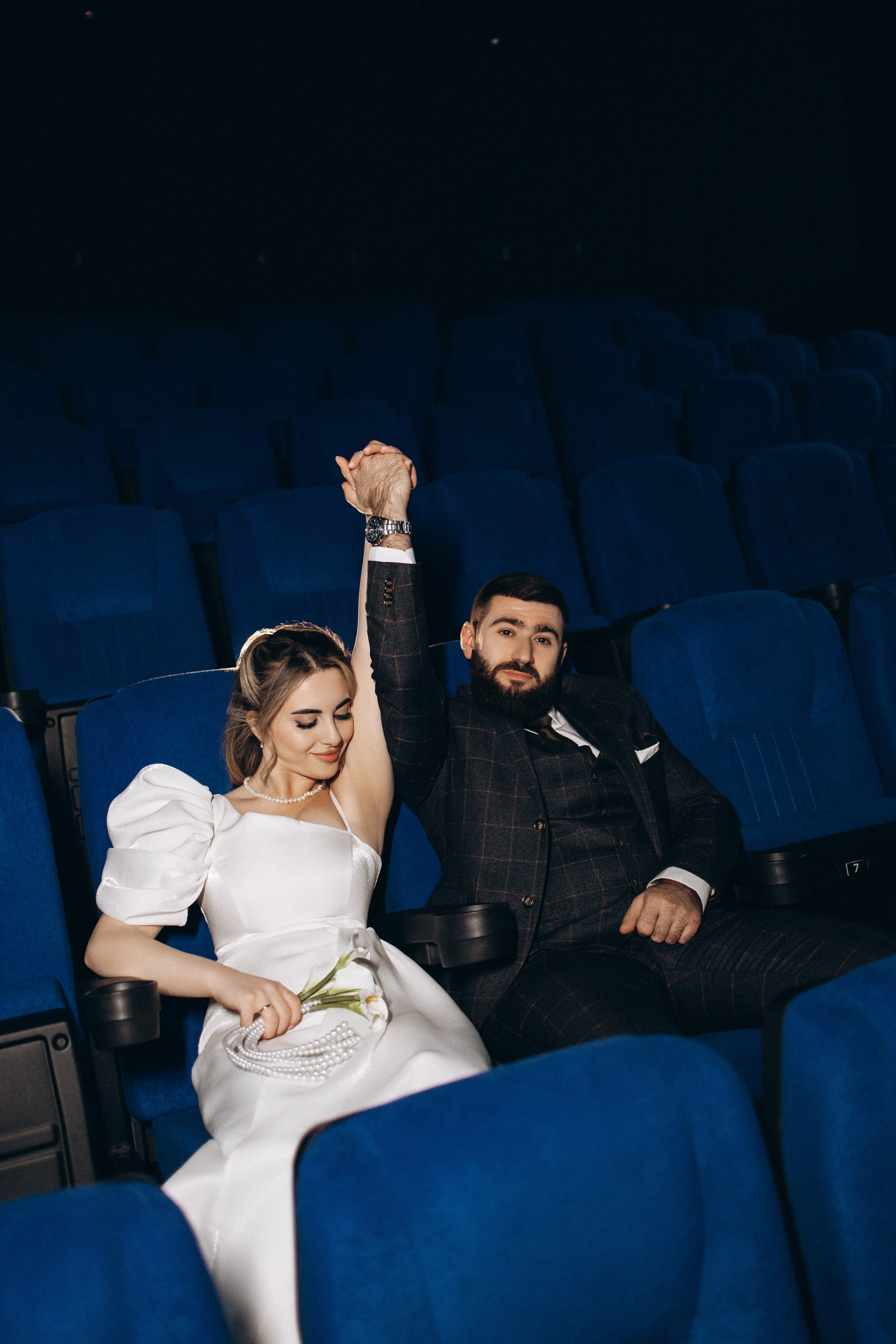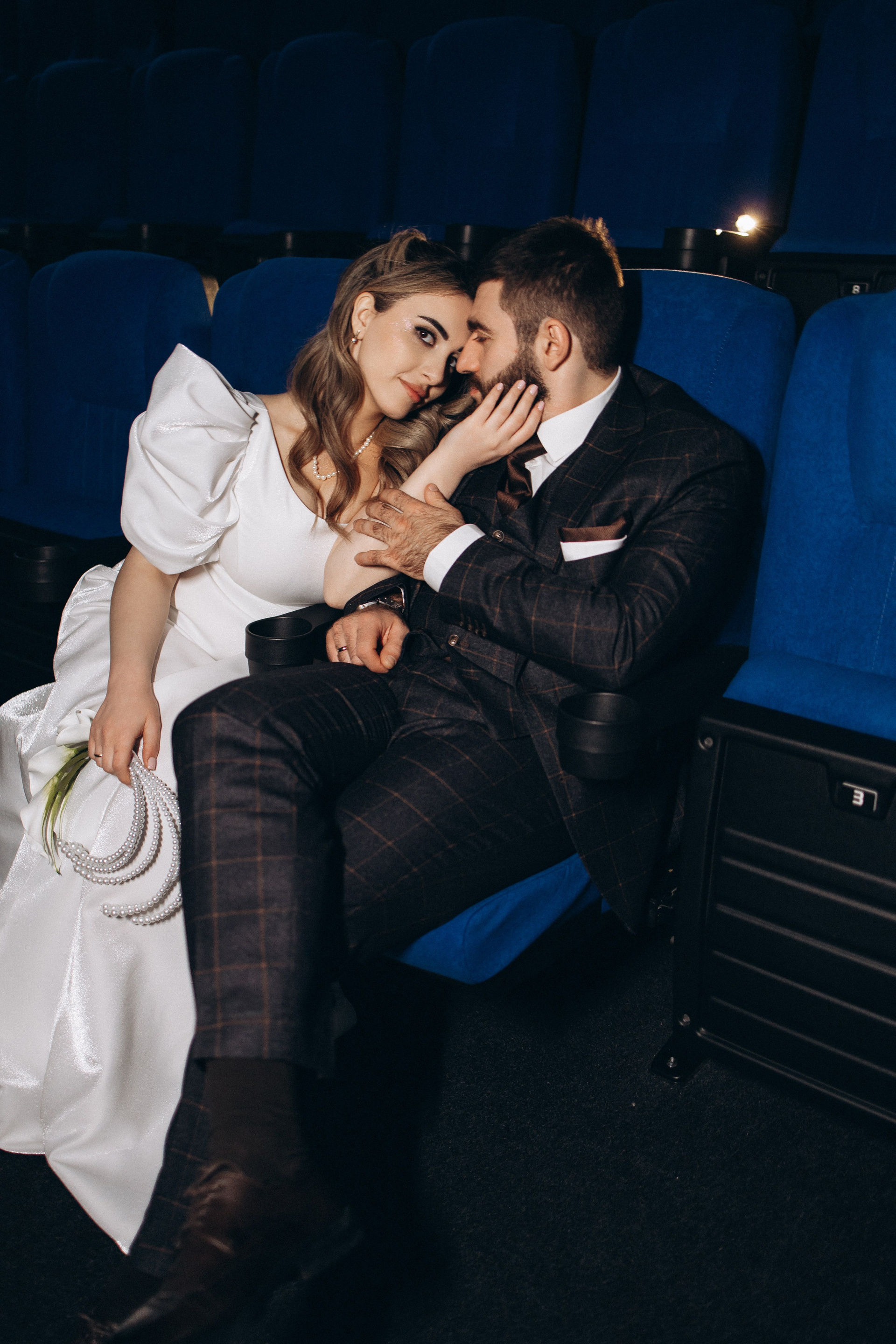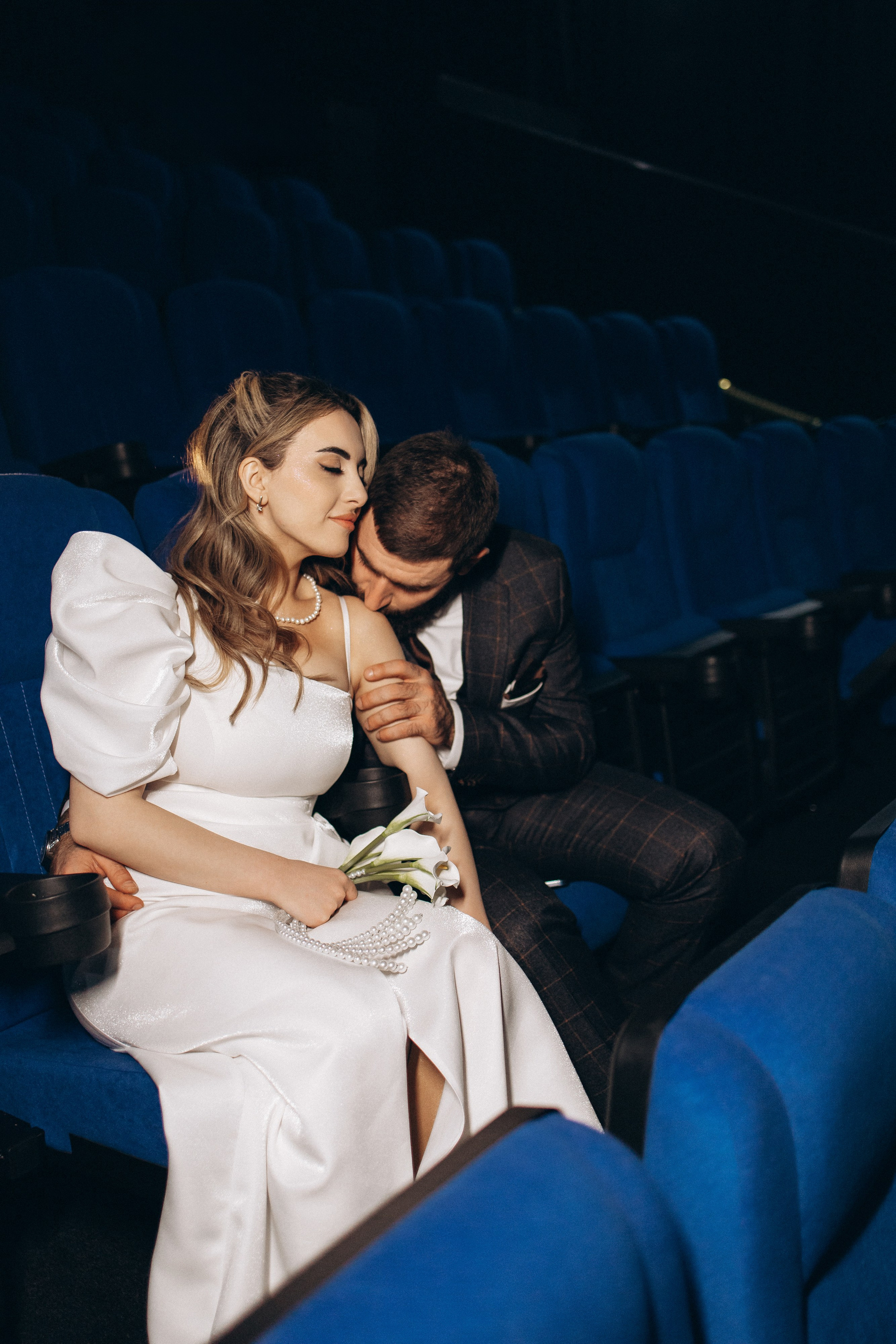 Утро прошло в домашних классических сборах: тёплые кадры с родными и друзьями, много эмоций. Затем ЗАГС, съёмка в кинотеатре и прогулка среди заснеженных ёлок. Результат — трогательная зимняя история любви. Я лично пищу от восторга