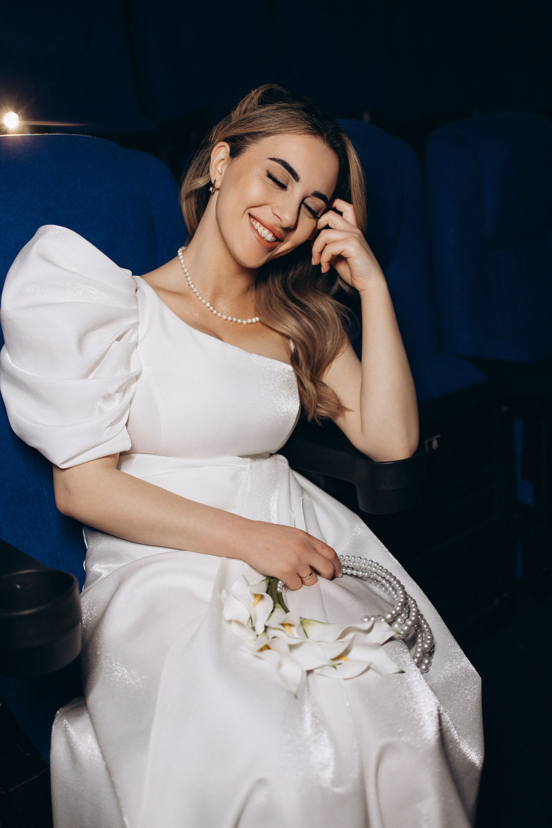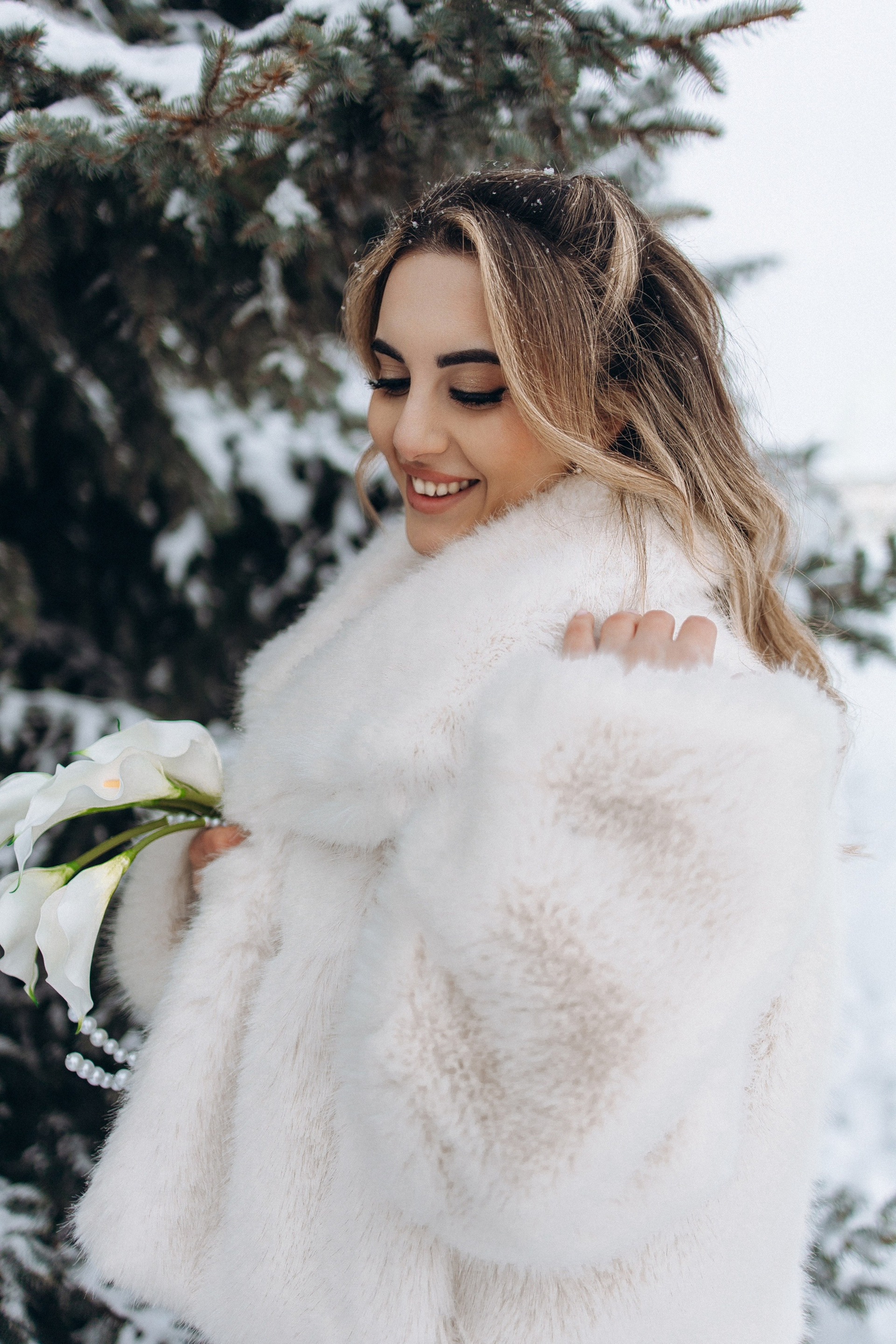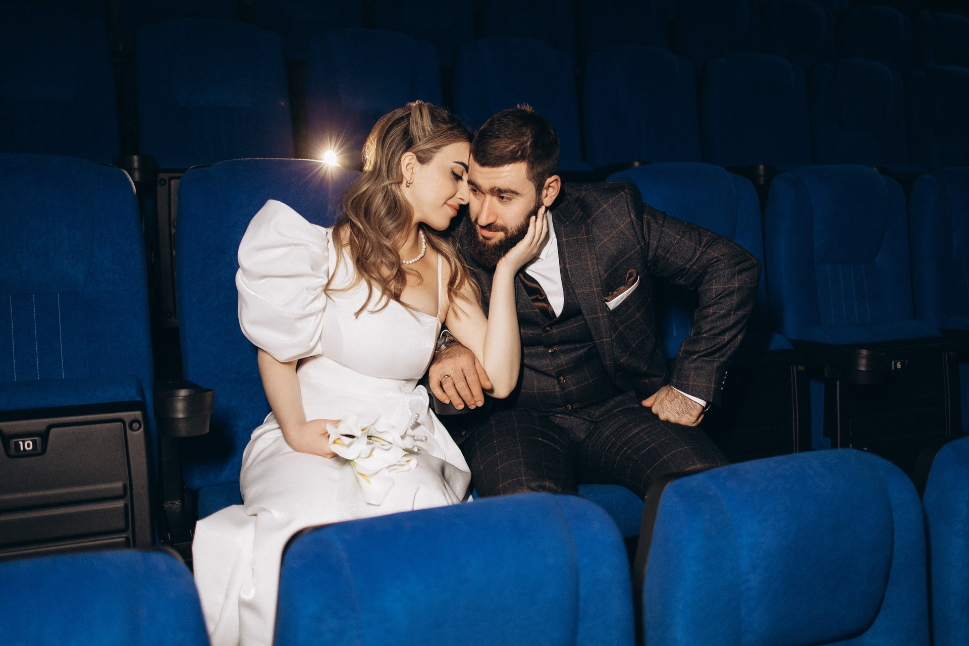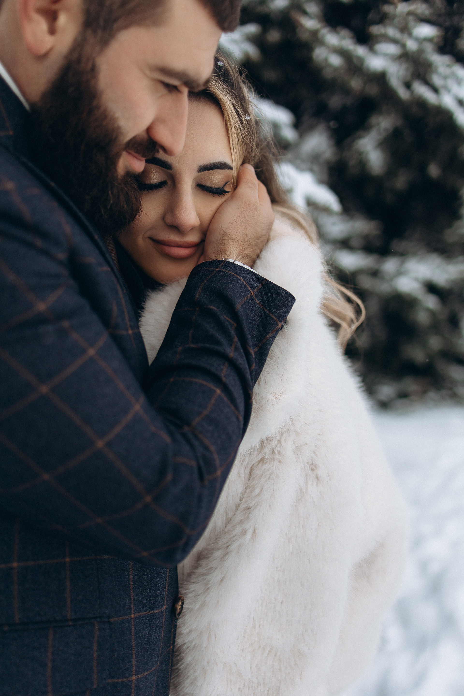 Утро прошло в домашних классических сборах: тёплые кадры с родными и друзьями, много эмоций. Затем ЗАГС, съёмка в кинотеатре и прогулка среди заснеженных ёлок. Результат — трогательная зимняя история любви. Я лично пищу от восторга