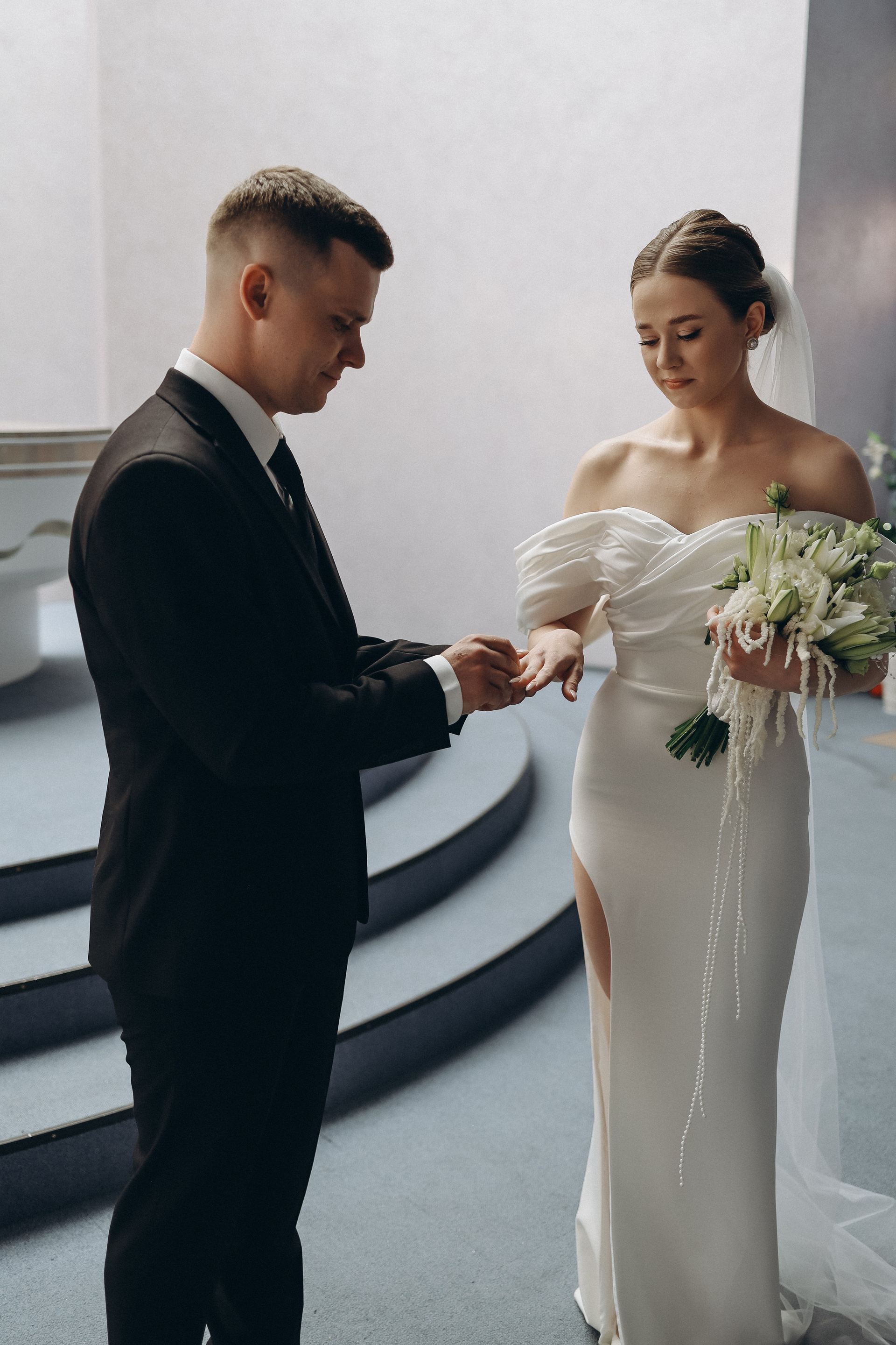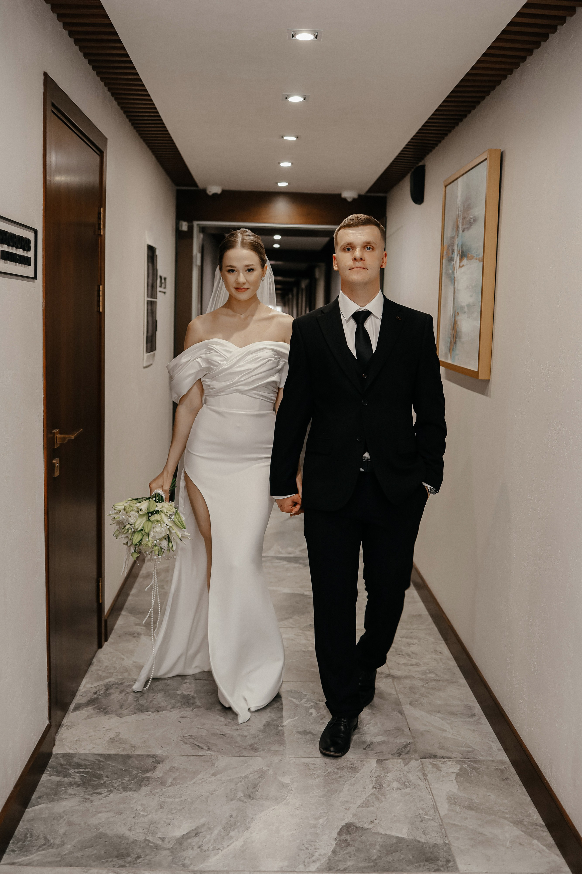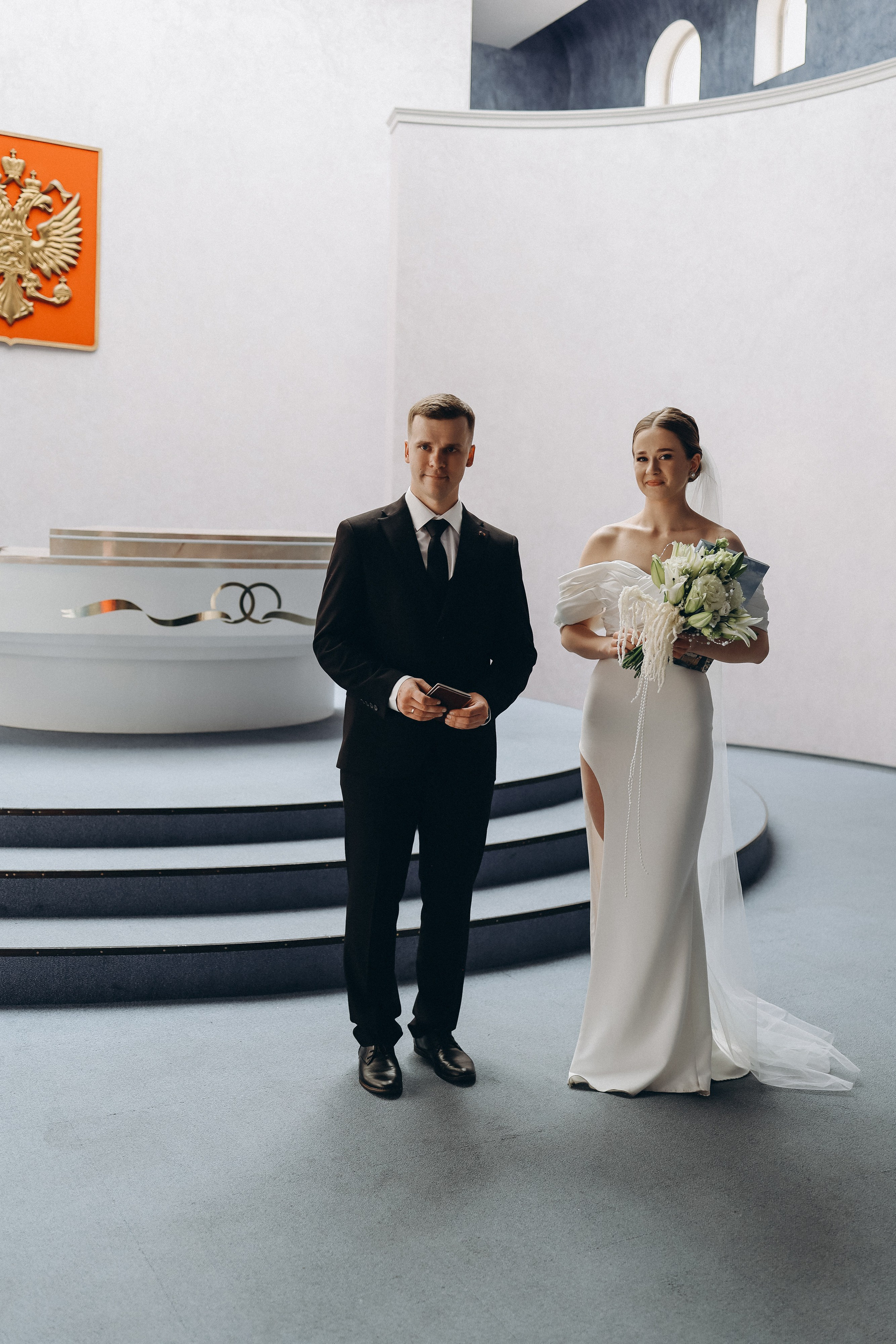 День продолжился в центральном ЗАГСе Белгорода — деликатные моменты с родными, искренние эмоции и тёплые объятия, которые выглядят особенно трогательно и настоящими. После официальной части — прогулка по площади. И в завершение — банкет, где вечер разгорелся теплом разговоров, тостов и близких людей рядом. Каждый кадр этого дня — маленькая история о простых счастливых деталях, которые вместе сделали его незабываемым.